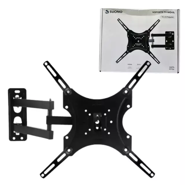 Transforma tu experiencia de entretenimiento con el Soporte de TV Movible SUONO. Diseñado para adaptarse a televisores y monitores de 14 hasta 55 pulgadas, este soporte con brazo articulado te permite ajustar tu pantalla a la posición perfecta. Fabricado con acero laminado en frío de alta resistencia, garantiza una instalación segura y es ideal para cocinas, dormitorios o salas donde necesitas girar, inclinar y acercar o alejar el TV de la pared para evitar reflejos o ver desde distintos puntos del ambiente.